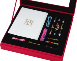 Include cordini, fili e una collana che può essere usata anche come bracciale doppio: le possibilità sono davvero molte. Il tutto è riposto in un’elegante scatola, così i bambini possono portare il set ovunque e tenere in ordine tutti i componenti.