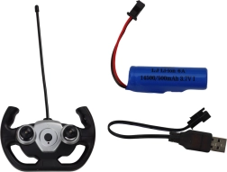 Questo giocattolo è adatto per bambini dai 3 anni in su e ha certificazioni CE e rispetta la norma EN71. La batteria da 3.7V 500mAh è inclusa, mentre il telecomando necessita di due batterie AA da 1,5V, che non sono incluse.