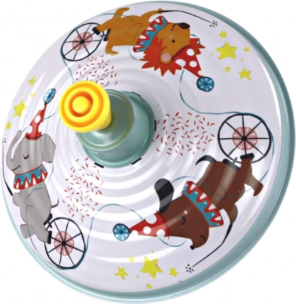 La nostra trottola rotante è un classico simbolo dell’infanzia che ancora oggi diverte e affascina. È realizzata in metallo, offrendo non solo resistenza ma anche il carattere autentico di un giocattolo tradizionale. Decorata con un motivo di animali da circo, la trottola acquisisce un fascino unico che si abbina perfettamente a un’atmosfera giocosa.