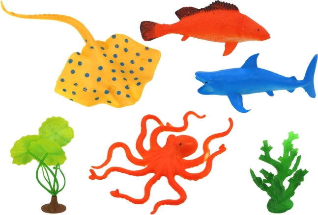 Set di figurine di animali marini con 7 pezzi e piante acquatiche