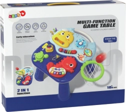 Il colorato tavolino interattivo a tema animali marini unisce apprendimento e movimento in un unico gioco. I bambini saranno attratti dal pianoforte, dall'orologio, dal libricino illustrato e dal polpo con perline, mentre il canestro per le palline aggiunge una sfida sportiva. Il gioco sviluppa in modo naturale la motricità fine, la percezione sensoriale e la coordinazione mano-occhio.