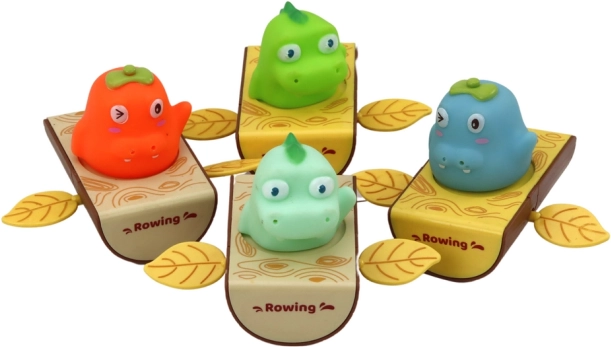 Giocattolo a carica per il bagnetto – dinosauro nella barchetta è il compagno ideale per bagnetti allegri e creativi. Basta ruotare la rotellina di carica inferiore, appoggiare la barchetta sull’acqua e guardarla muoversi da sola grazie a due palette laterali che “remano”. Il dinosauro colorato a bordo invita a inventare storie e giochi di ruolo.