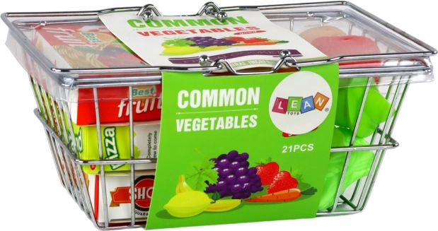 Questo autentico cestino della spesa per bambini in metallo trasforma ogni gioco in un vero momento di shopping. Il set include una vasta selezione di alimenti – dalla frutta e verdura fino alla pizza e al succo – così i bambini possono allenare il riconoscimento degli alimenti, il calcolo e il role-playing di situazioni della vita quotidiana.