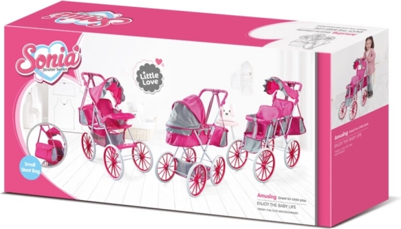 Il passeggino è dotato di capottina pieghevole per proteggere la bambola dal sole, borsa per accessori per tutti i piccoli oggetti e cestino inferiore per altri giocattoli. È leggero, facile da manovrare e sicuro, il che lo rende un ottimo regalo per bambini dai 3 anni in su.