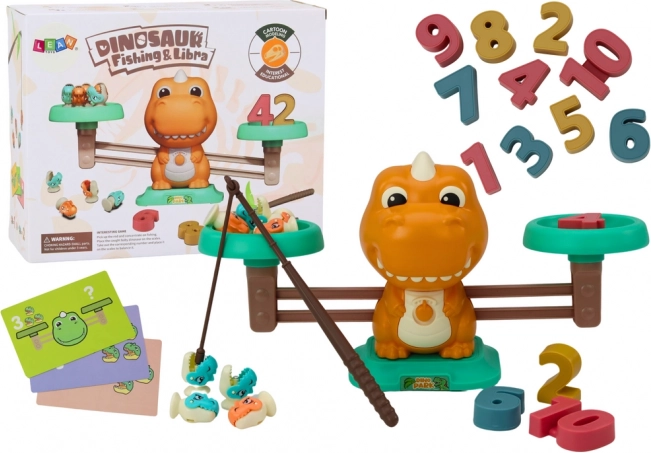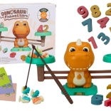 Il set include una bilancia, due canne da pesca magnetiche, 10 numeri, 10 piccoli dinosauri e 10 carte con problemi matematici. La confezione originale facilita lo stoccaggio di tutti i componenti in un unico posto.