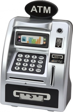 Il bancomat per bambini è lo strumento perfetto per imparare la responsabilità finanziaria con un tocco di divertimento interattivo. Realizzato in plastica resistente nei sofisticati colori argento-nero, questo bancomat combina un aspetto autentico e tecnologie moderne come il rilevatore di impronte digitali e gli effetti sonori e luminosi.