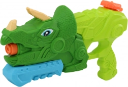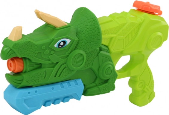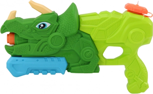 La pistola ad acqua dinosauro Triceratopo è un'ottima scelta per battaglie d'acqua per bambini. Questo dinosauro verde con dettagli arancioni e blu è progettato per garantire grande divertimento con sicurezza per i bambini. La capacità del serbatoio è di circa 1000 ml e grazie alla maniglia a pompa l'acqua viene sparata dalla bocca del dinosauro.
