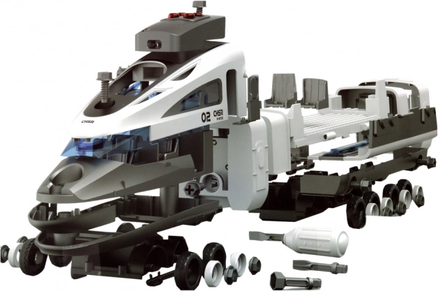 Un trenino realizzato in modo realistico, ispirato ai convogli ad alta velocità HYPERLOOP, coinvolge i bambini nel mondo della ferrovia. I pezzi si avvitano e si rimontano facilmente con il cacciavite in dotazione con punte intercambiabili – ideale per sviluppare motricità fine, concentrazione e pensiero tecnico.