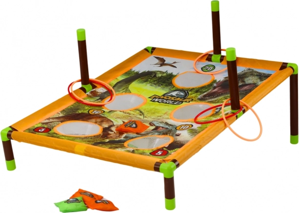 Il gioco è composto da una solida e colorata tavola da gioco decorata con immagini di vari dinosauri, che non solo favorisce il gioco, ma stimola anche l'immaginazione dei bambini. La tavola include un sistema di punteggio che introduce un elemento di competizione ed entusiasmo. Il set comprende anche sacchetti da lancio progettati appositamente per la stabilità in volo e la precisione del tiro, oltre a cerchi.
