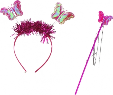 Il set include un cerchietto rosa per capelli con deliziose orecchie da farfalla, che aggiunge alla testolina un tocco speciale di fascino ed eleganza. Grazie alla bacchetta in materiale lucente, il bambino si sentirà come una vera fata che lancia incantesimi e realizza desideri.