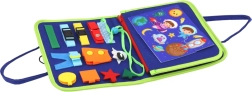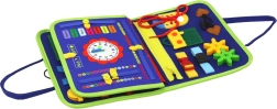 Comprende vari elementi manipolativi come zip, bottoni e lacci per sviluppare la motricità fine.