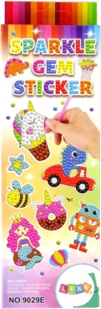 Trasforma il tempo libero in un’attività creativa con il set di adesivi per diamond painting. I bambini, grazie alle gemme colorate, realizzano immagini scintillanti su sagome prestampate: allenano così pazienza, precisione e senso del colore e della composizione. Ideale per pomeriggi tranquilli a casa o come regalo originale.