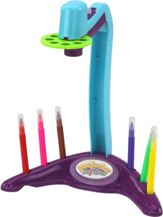 Il proiettore per disegno per bambini sviluppa creatività e motricità fine. Include 3 dischi intercambiabili con immagini e un set di pennarelli colorati per tracciare e colorare con facilità. Facile da usare, alimentazione a batterie, adatto dai 3 anni, con certificazione CE e conformità alla EN71.