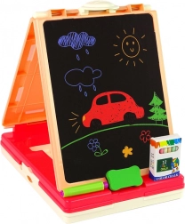 - Lavagna per bambini 3in1 a doppia faccia con tavolino e giochi da tavolo