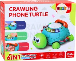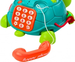 Questo giocattolo ha un telefono multifunzionale e una tastiera che permettono ai bambini di simulare chiamate telefoniche, aumentando l'esperienza realistica grazie ai suoni di composizione e squillo. I cinque pulsanti sul guscio della tartaruga offrono la possibilità di ascoltare i nomi di numeri, lettere, suoni di strumenti e animali, così come melodie allegre.