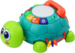 Il tamburo interattivo sul dorso della tartaruga con effetti di luci contribuisce alle esperienze sensoriali e offre un'ulteriore dose di divertimento e creatività. Il pulsante a forma di tartaruga accanto al tamburo attiva il movimento della tartaruga, favorendo l'immaginazione e le abilità motorie dei bambini.
