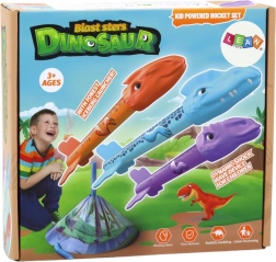 Il set contiene tre razzi a forma di dinosauro in diversi colori (arancione, blu, viola), che garantiscono un gioco vario.