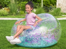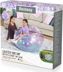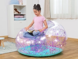 La poltrona gonfiabile con paillettes Bestway Glitter Dream è un elemento di design perfetto per la cameretta dei bambini o come arredo da giardino alla moda per i giovani. La poltrona è realizzata in PVC trasparente, riempito di glitter scintillanti, che le conferiscono un aspetto cosmico capace di illuminare qualsiasi ambiente.