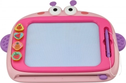 La lavagna magnetica è ideale per i primi disegni, la scrittura e l’apprendimento di base. Sotto lo schermo si trovano particelle metalliche che, al tocco della penna magnetica, si compongono in immagini in quattro colori (blu, giallo, verde, rosso). Basta scorrere il cursore cancellante e la superficie torna pulita, senza carta né disordine.