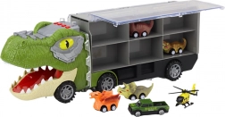 Camion con rimorchio, 4 macchinine dinosauro, auto con rimorchio, elicottero