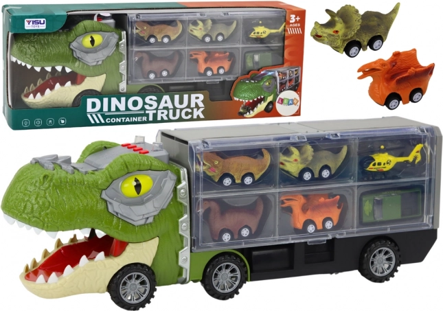 Camion dei dinosauri con rimorchio e 6 macchinine con luci e suoni – verde