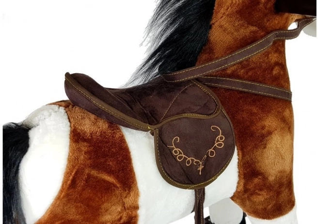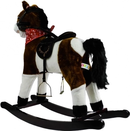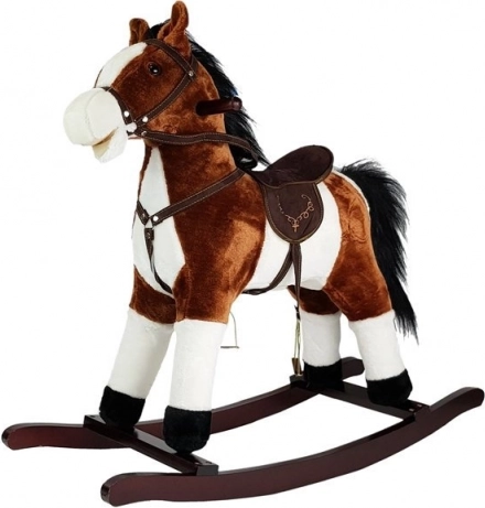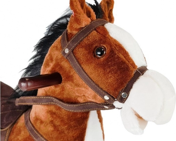 Il nostro cavallo a dondolo marrone scuro è realizzato in morbido materiale peluche che assicura comfort durante il gioco prolungato. Il cavallo è dotato di suoni realistici che si attivano premendo l’orecchio, animando l’atmosfera del Selvaggio West con nitriti e rumori di galoppo.