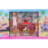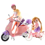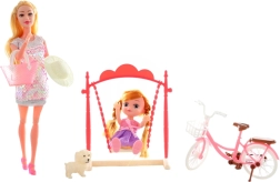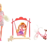 Scopri il grande set di bambole con accessori che offre ore di divertimento creativo. Include una bambola snodata da 30 cm, una bambola più piccola da 16 cm, un'auto rosa da 33 cm, uno scooter da 30 cm, una bicicletta da 17 cm, un'altalena, un cagnolino e accessori alla moda come cappello, casco e borsa. Realizzazione in plastica di qualità, confezionato in scatola regalo. Età 3+.