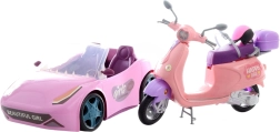 L'auto rosa (33 cm), lo scooter realistico (30 cm) e la bici (17 cm) permettono alle bambole di partire per gite, andare in città o al parco. Sono facili da manovrare e incoraggiano il gioco dinamico.