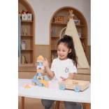 I 20 blocchi in diverse tonalità pastello e forme incoraggiano la costruzione creativa e lo sviluppo delle capacità manuali.