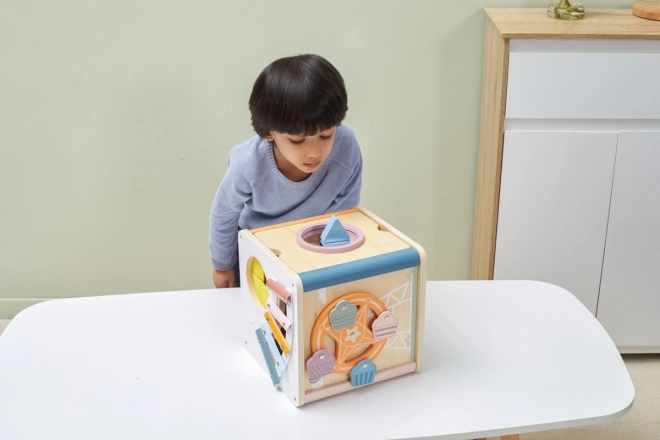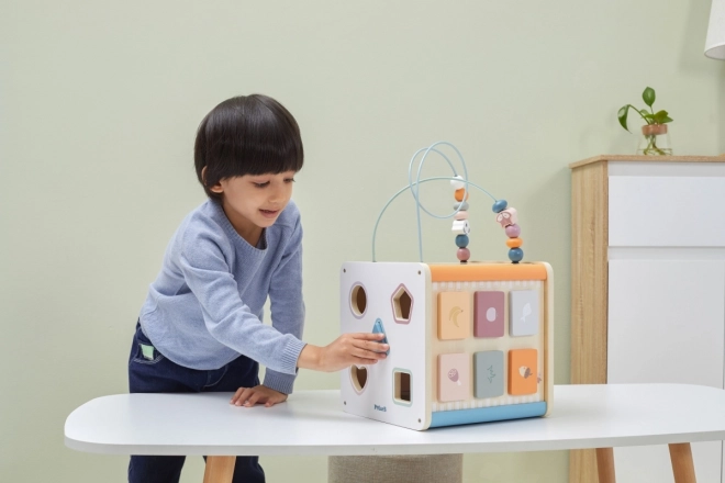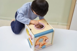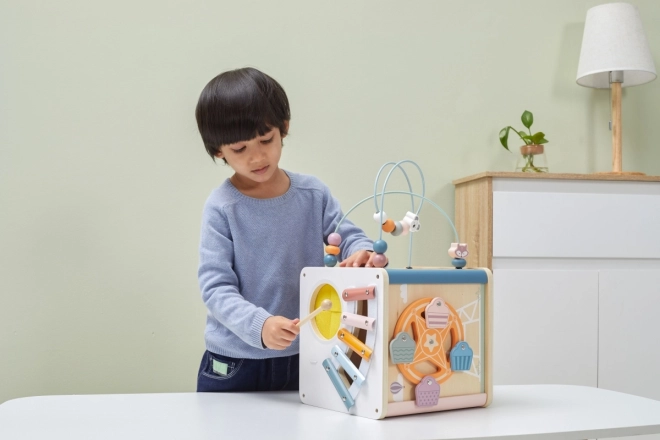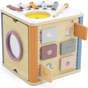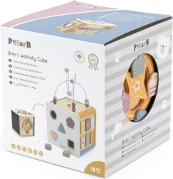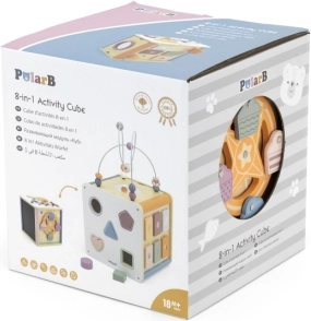 Viga PolarB Cubo Educativo 8in1 offre otto diverse attività che soddisfano diversi aspetti dello sviluppo del bambino. Il giocattolo contiene: