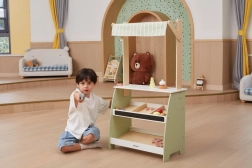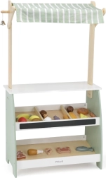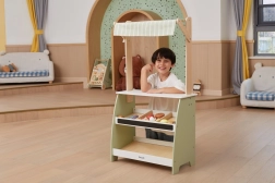 Bancarella da gioco in legno del marchio Viga offrirà ai vostri bambini un livello superiore di divertimento nel gioco del venditore. Realizzata in legno robusto e dipinta in tonalità pastello di verde, questa bancarella incanterà non solo per l'aspetto ma anche per la funzionalità. Due mensole, una tenda di stoffa e un piccolo campanello la rendono un angolo ideale per il gioco immaginativo.