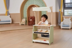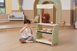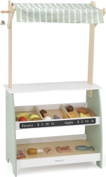 La bancarella in legno offre spazio sufficiente per diversi tipi di giocattoli, rendendola ideale per giochi di negozio o mercatini di verdure.