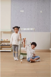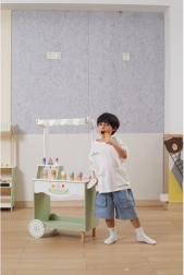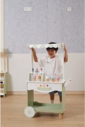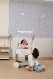 Mobile grazie alla struttura a due ruote, questo chiosco è ideale per giocare sia all'interno che all'aperto, incoraggiando i bambini al gioco di ruolo e all'interazione sociale.