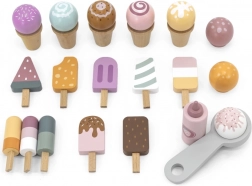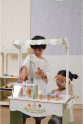 Il chiosco contiene vari tipi di gelati in legno, che permettono ai bambini di creare le proprie combinazioni di gelato.