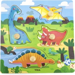 Puzzle di legno con dinosauri del rinomato marchio Viga sono un giocattolo educativo ideale per bambini a partire dai 12 mesi, che aiuta a sviluppare la motricità fine, il riconoscimento delle forme e la coordinazione occhio-mano.