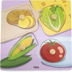 Puzzle in legno con verdure del marchio rinomato Viga aiuta i bambini a sviluppare capacità motorie, coordinazione e pensiero logico. Il set include 4 pezzi di verdure e illustrazioni colorate che facilitano il riconoscimento delle forme per i bambini.
