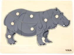 Scopri il puzzle ad incastro Montessori in legno VIGA con motivo dell’ippopotamo, che sviluppa la motricità fine, la coordinazione occhio–mano e la prima conoscenza delle forme. Grazie alle manopole sui pezzi è facile da comporre anche per i più piccoli; la robusta tavoletta misura 30 × 22,5 × 1 cm ed è adatta dai 18 mesi.