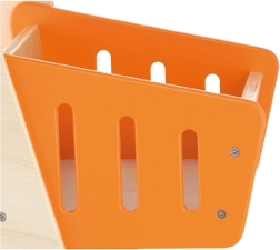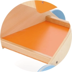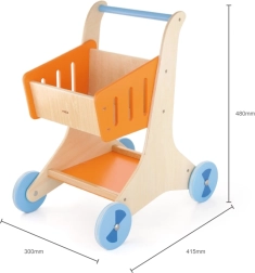 Le dimensioni studiate di circa 41,8 × 48 × 30 cm assicurano una spinta confortevole e spazio sufficiente nel cestino. L'alta qualità costruttiva, con una combinazione di legno naturale e colori vivaci, stimola i sensi e rende il carrello un accessorio attraente per la cameretta.