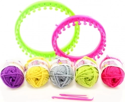 - 5 gomitoli di lana, 2 telai, uncinetto, istruzioni