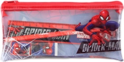Set scolastico stiloso per i piccoli fan di Spiderman: pratico astuccio in PVC con cerniera completo di righello, gomma, temperamatite e matita. Formato compatto circa 18 × 9 cm, adatto ai bambini dai 3 anni.