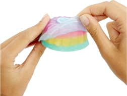 Trasforma il gioco in una dolce festa! I bambini mescolano le miscele colorate con l'acqua, riempiono lo stampo e in pochi istanti creano un abito a forma di torta di compleanno. Poi basta sformare, decorare con i glitter, vestire la bambola e dare inizio a una storia piena di fantasia.