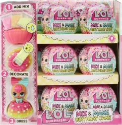Nella confezione trovi la bambola, 3 miscele colorate, lo stampo per l'abito-torta, vestitini, accessori e glitter per il tocco finale. La serie da collezione include 9 personaggi (es. NEON Q.T., BON BON, ICE SK8R, SUPER B.B.). Varianti assortite – spedizione casuale, prezzo riferito a 1 pezzo.