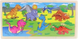 Scopri il mondo dei dinosauri con puzzle in legno di qualità che i bambini compongono facilmente direttamente sulla tavola fornita con bordo robusto. Grazie al formato della base, i pezzi restano meglio in posizione e l’assemblaggio è chiaro anche per i principianti.