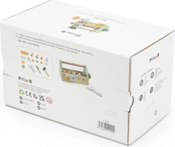 La cassetta e gli strumenti sono realizzati in legno di qualità, senza spigoli vivi e con superfici verniciate con colori atossici, per un gioco il più possibile sicuro per i bambini.