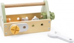 Il set di attrezzi in legno POLARB del marchio VIGA è la scelta perfetta per i piccoli artigiani dai 3 anni. Nella robusta cassetta in legno i bambini troveranno un martelletto, una chiave, un cacciavite, viti e dadi, ingranaggi e pannelli forati per avvitare. Giocando sviluppano motricità fine, coordinazione mano-occhio, creatività e pensiero logico.