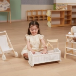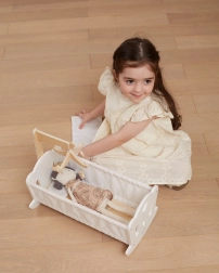 Grazie ai robusti elementi in legno e al cuscino con copertina inclusi, creerai per la bambola un posto accogliente dove riposare. La culla è perfetta per la cameretta dei bambini e sostiene abilità sociali, immaginazione e motricità fine e grossa.