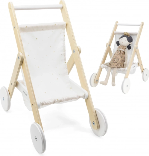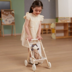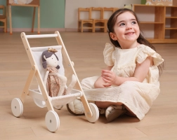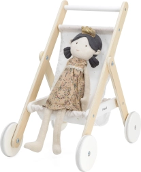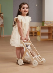 Regalate ai bambini un gioco realistico da piccoli genitori con l’elegante passeggino in legno per bambole. Unisce design senza tempo, materiali di qualità e lavorazione sicura, per rendere ogni “passeggiata” con la bambola comoda e silenziosa. I battistrada in gomma sulle ruote riducono il rumore sul pavimento e migliorano la stabilità nei primi passi.