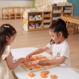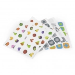 Carta colorate con motivi di forme, frutta e animali permettono di adattare la difficoltà e insegnare ai bambini a riconoscere e classificare.