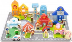 Questo set di costruzioni in legno di qualità offre ai bambini un’intera città su un’unica area di gioco. Con i 20 pezzi puzzle si compongono prima strade e piazzole, poi con i 60 mattoncini colorati si costruiscono gli edifici. Non mancano veicoli, personaggi di varie professioni e accessori come alberi e segnali stradali per un gioco ancora più realistico.