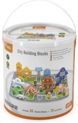 Scopri il mondo creativo con il set di costruzioni in legno città del marchio Viga – un set colorato con 80 pezzi tra cui una base puzzle da 20 pezzi, 60 mattoncini in legno, veicoli e personaggi. I bambini possono costruire scuola, ospedale, polizia, pompieri, aeroporto, pasticceria e circo esercitando motricità fine, creatività e fantasia. Il pratico secchio con manico facilita il riordino e il trasporto.